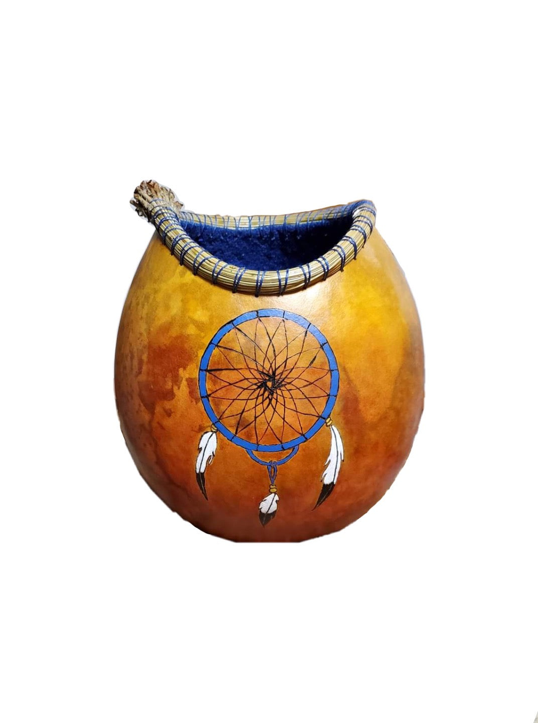 This gourd shows how alcohol inks can be blended to create a gradient effect. Alcohol inks should be sealed with a UV protective sealant such as Krylon Kamar spray varnish or a brush on product used very carefully.