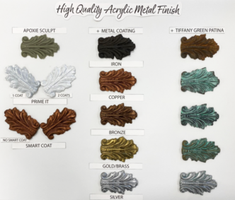 The Green Gold/Verdigris (Tiffany Green) Patina add a green bloom to brass, copper and bronze metals and a rust oxidation to iron. This is a real patina and actually oxidizes metal (both real metal and metal coated pieces!) Patina’s can be painted on with a brush or put the patina in a spray bottle and mist it onto the piece. These patinas react differently depending on which metal they are dabbed on. Experiment with different metals for all kinds of different looks!