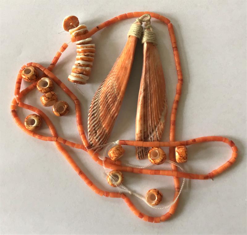 10 India Crow Marble beads - 10 Spiney Oyster Shell Discs
