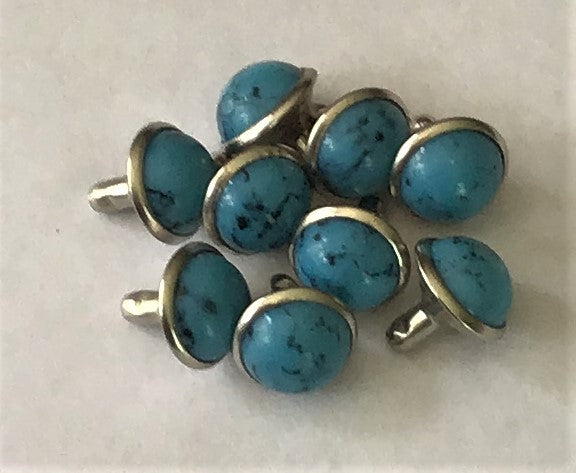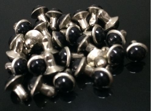 These small studs have synthetic stone cabochon set into the top, and a peg on the back. Simply drill a hole in the gourd, add a bit of glue and pop them in!
